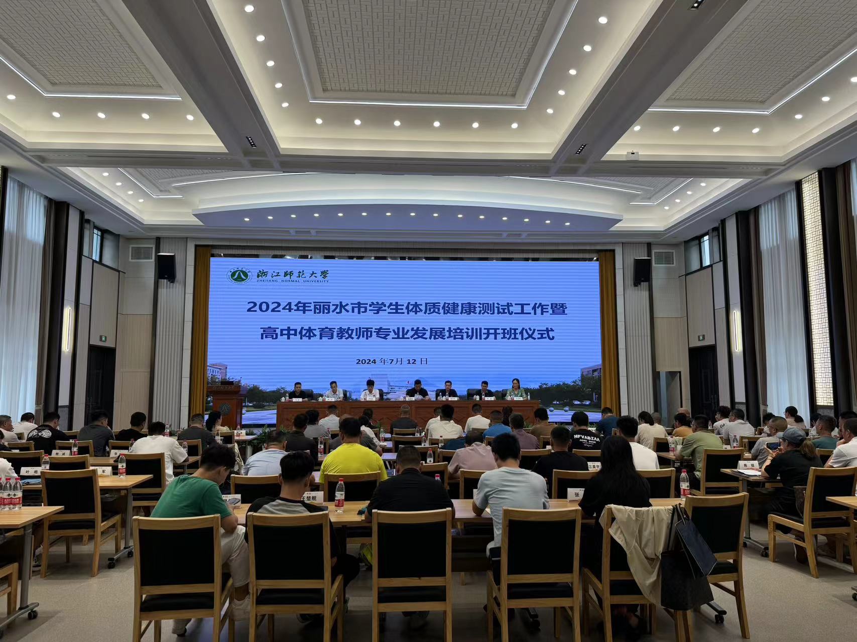 7月12日,由丽水市教育局主办、beat365承办的2024年丽水市学生体质健康测试工作暨高中体育教师专业发展培训班开班仪式在beat365举行,丽水市教育局党委委员、副局长谢瑞波,丽水市教育局基教处副处长詹鑫,丽水市教研院体育教研员胡伟,学院党委书记姜洪友,副院长何晓龙,党委委员、公体部主任沈沈军,授课专家、浙江工业大学体育军训部教授王玉秀出席开班仪式,培训班80余位学员参加开班仪式。