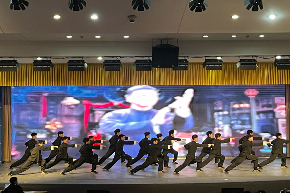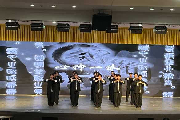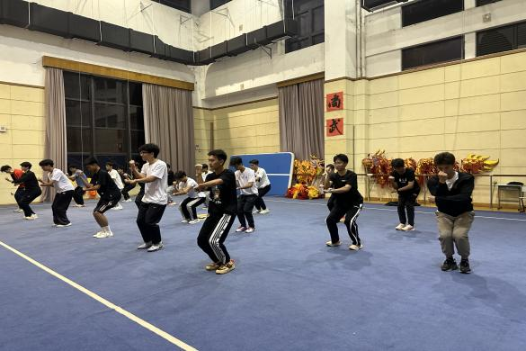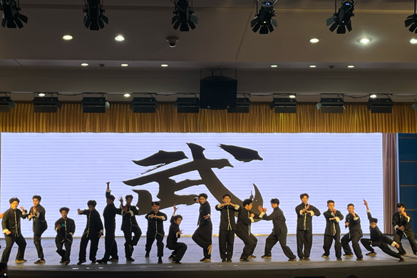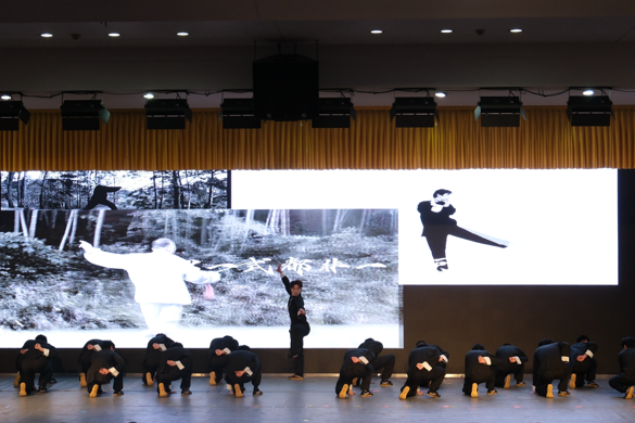 “台上一分钟,台下十年功。”同学们几乎从零起步,其中所付出的汗水与时间,唯有坚持到底之人方能知晓。从节拍、力度、姿态直至神态他们一次次练习直至成为一个配合默契的团队;为使表演更具吸引力,同学们在熟练掌握动作的基础上,进一步追求动作的刚柔并济,通过动作幅度和速度的变化,来诠释武道的形意融合。正所谓天道酬勤,上百次聚精会神的练习,最终铸就了舞台上的整齐划一。