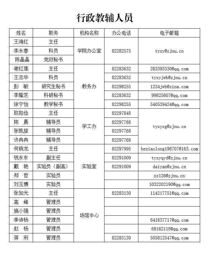 院长信箱:tyyzsj@zjnu.cn | 书记信箱:tysjyz@zjnu.cn